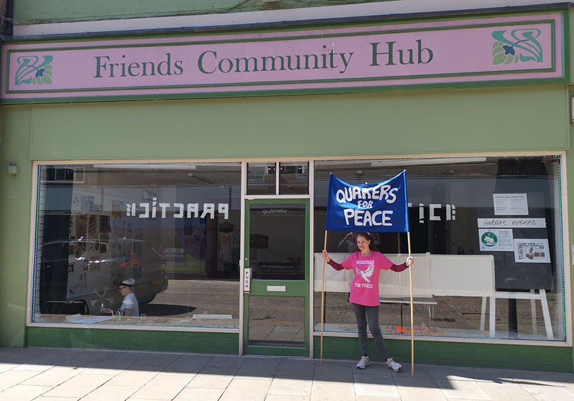 Helen (a Quaker and the resident Friend at Darlington Meeting House) manages all of Teesdale and Cleveland Area Meeting's commercial properties on Skinnergate in Darlington. These include the Quaker Business Centre (with seven small office spaces), a gallery and gift shop, and a hair salon. When one of the units became available in 2023 Helen asked area meeting trustees if she could convert the space into a community hub.