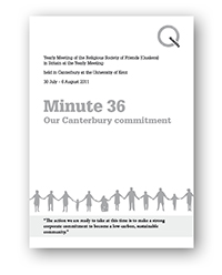At the Yearly Meeting of the Religious Society of Friends (Quakers) in Britain in Canterbury at the University of Kent in 2011, Friends agreed a meaningful minute, now known as the Canterbury Commitment. It issued a clear call to action to consider the effect of our lives on the world's limited resources. It ends with the assertion that “above all that, Friends keep in their hearts that this action must flow from nowhere but love."