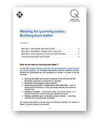 After the Covid pandemic, Quakers joined a campaign for a green and just recovery. The campaign sought to secure the health and needs of everyone in the U and to rebuild society with a plan to decarbonise the economy in a way that tackles inequality and enhances people's lives. This resource includes sessions plans and worship sharing guides that may still be relevant for Quaker Meetings considering how to work for local and national change.