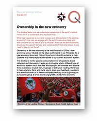 This booklet asks how we understand ownership of the earth's natural resources in a sustainable and equitable way. What has happened to our land, oceans and atmosphere in the existing economy? How can we engage with the earth's resources fairly and with concern for our history and our future? How can we shift economic structures to support fairness and sustainability? And what steps do we need to take to get there?